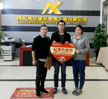 主任設(shè)計(jì)師陳楊/高級(jí)客戶經(jīng)理高宇眾感謝熙水岸的業(yè)主徐先生的信任,徐先生在國(guó)慶期間成功與我們四川鴻信建筑裝飾工程有限公司簽約,您的信任是我們前進(jìn)的動(dòng)力。地