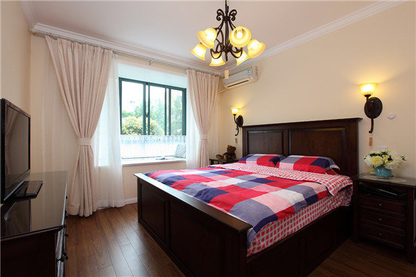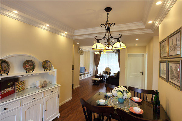 設(shè)計(jì)說明:摒棄了繁瑣和奢華,并將不同風(fēng)格中的優(yōu)秀元素匯集融合,以舒適機(jī)能為導(dǎo)向,強(qiáng)調(diào)“回歸自然”,使這種風(fēng)格變得更加輕松、舒適。美式鄉(xiāng)村風(fēng)格突出了生活的舒適和自由,不論是感覺笨重的家具,還是帶有歲月滄桑的配飾,都在告訴人們這一點(diǎn)。特別是在墻面色彩選擇上,自然、懷舊、散發(fā)著濃郁泥土芬芳的色彩是美式鄉(xiāng)村風(fēng)格的典型特征。美式鄉(xiāng)村風(fēng)格的色彩以自然色調(diào)為主,綠色、土褐色最為常見;壁紙多為純紙漿質(zhì)地;家具顏色多仿舊漆,式樣厚重;