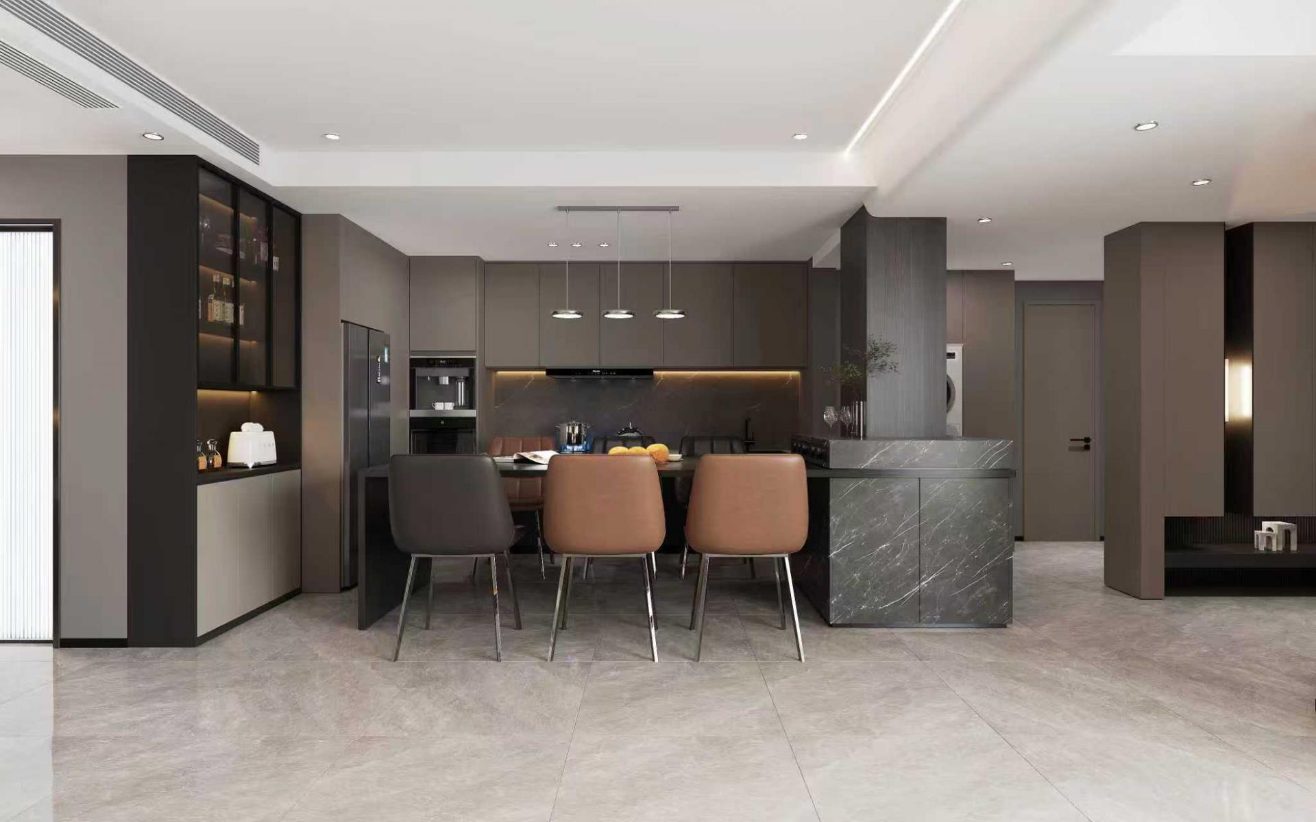 通過深色系傳遞意式設計的沉穩(wěn)與內斂,以金屬、天然材質等元素注入輕奢質感,同時在空間布局上兼顧套三戶型的實用性(如儲物空間規(guī)劃、動線流暢性),最終實現“顏值與功能并存”的高級居家體驗,既符合意式設計對細節(jié)的考究,又滿足現代家庭的生活需求。